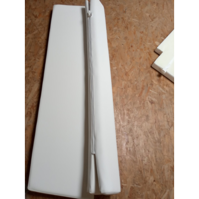 L'assise est une Mousse: HR 41kg/m3 épaisseur 50mm, le dessous est en grille pour l'aération et muni de pressions